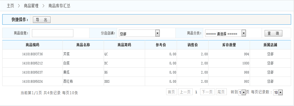 篩選:可以根據(jù)編碼或者簡碼或者名稱 快速找到某個商品 也可以根據(jù)店鋪或者商品分類查詢數(shù)據(jù)
