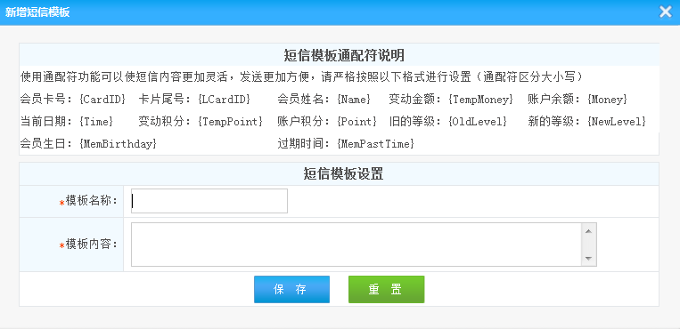 幫助文檔 -> 五通一卡通云會(huì)員管理系統(tǒng)短信模版